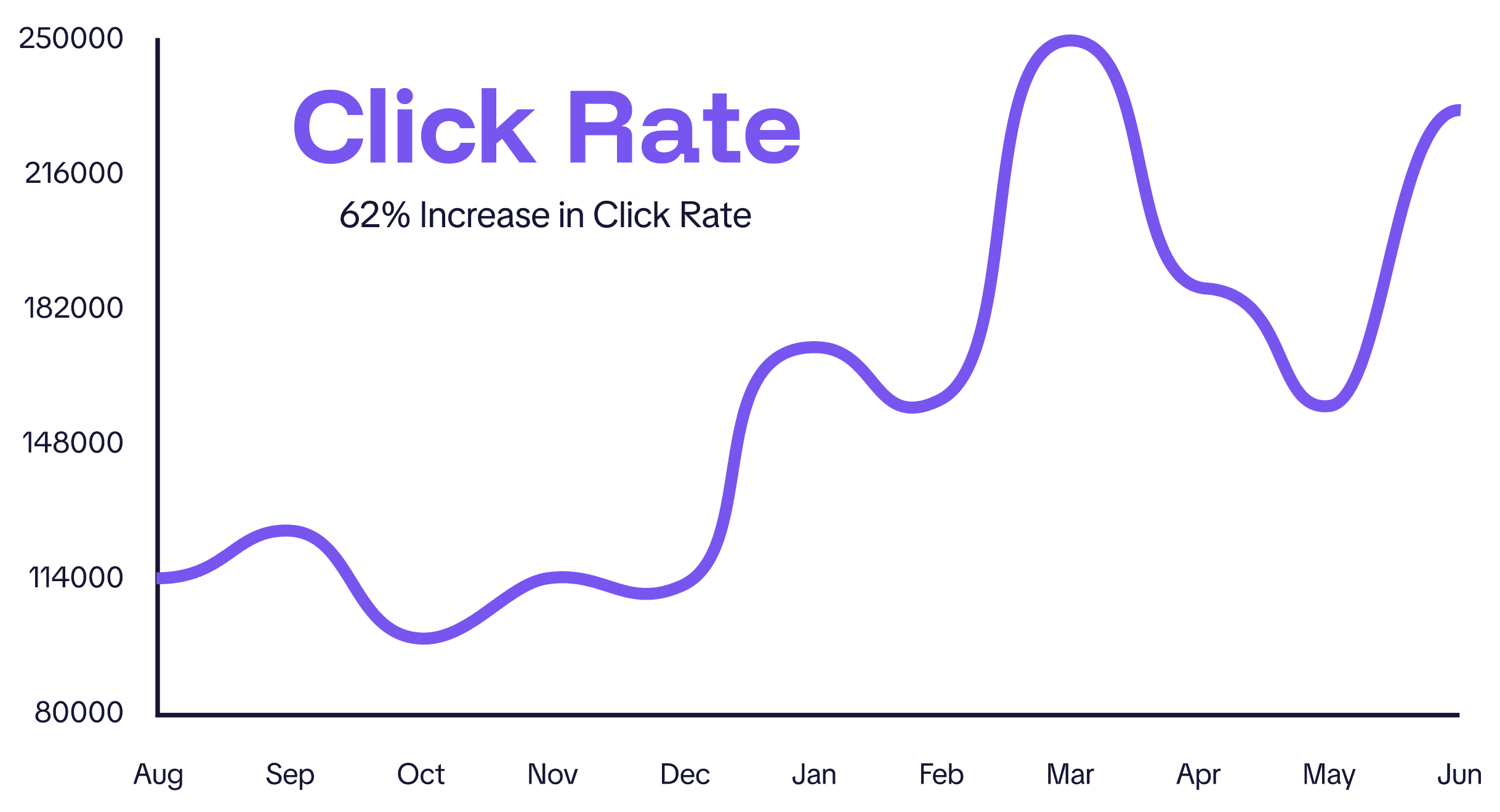 While keeping send rate roughly the same, our team's creative dramatically boosted click and order rates for this client. Today, the brand ranks among the top five meat-delivery services in the US.